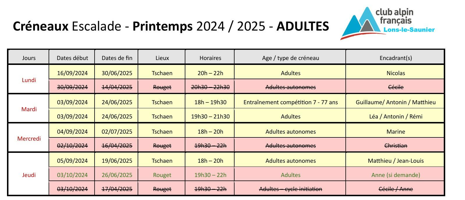 Créneaux adultes printemps