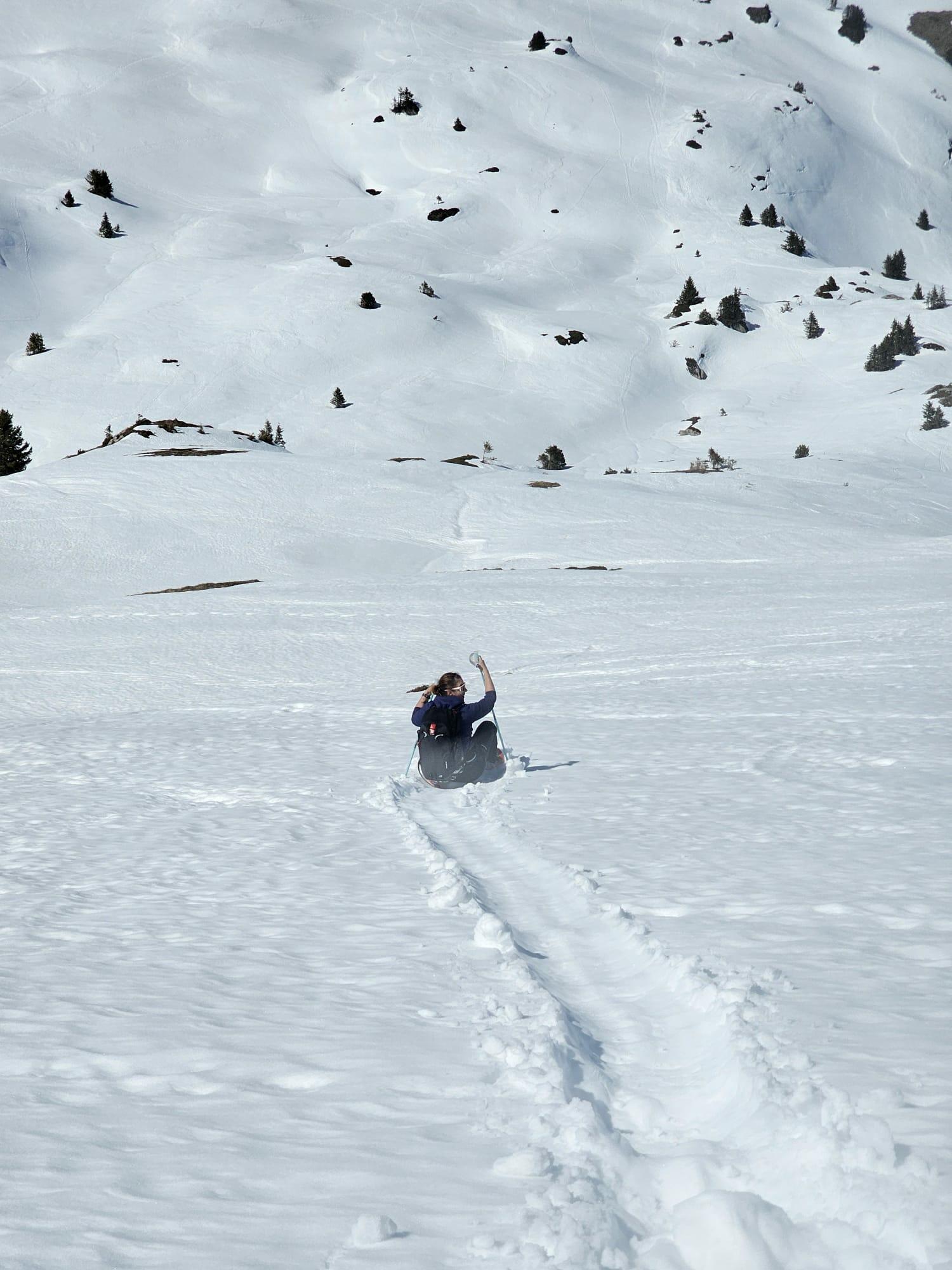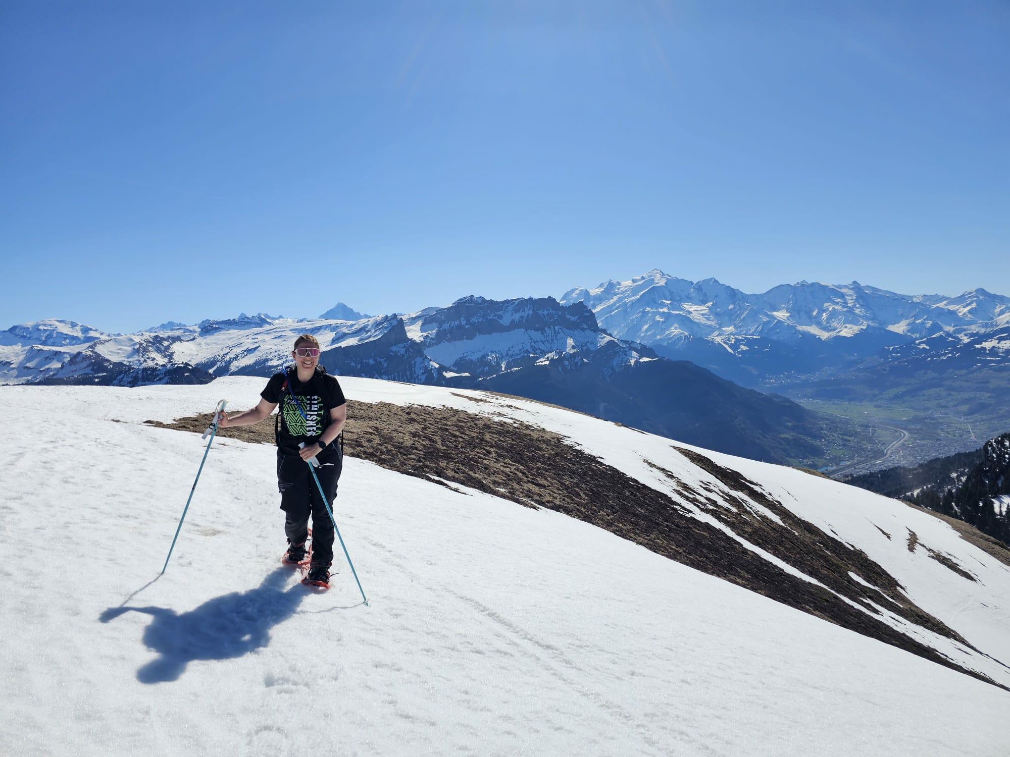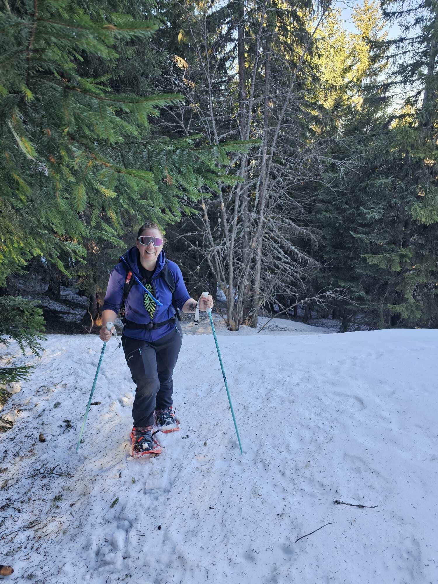 Moi (Valérie), c'est moins gracieux, la raquette coincée dans un trou.